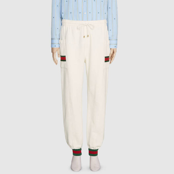 Брюки knitted jogging trousers with webbing for men white Gucci, белый 93 543₽