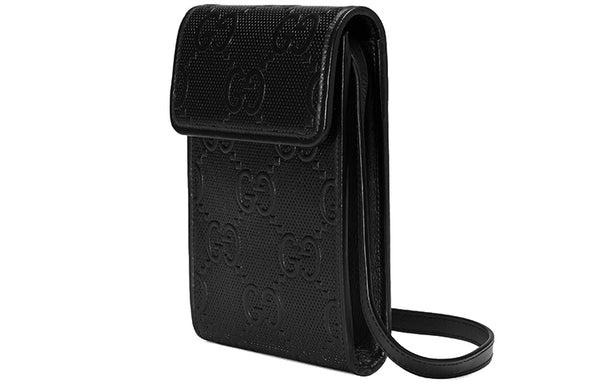 Сумка logo embossing leather shoulder messenger bag mini / black Gucci, черный 105 151₽