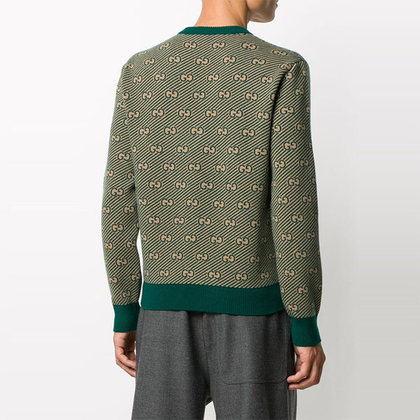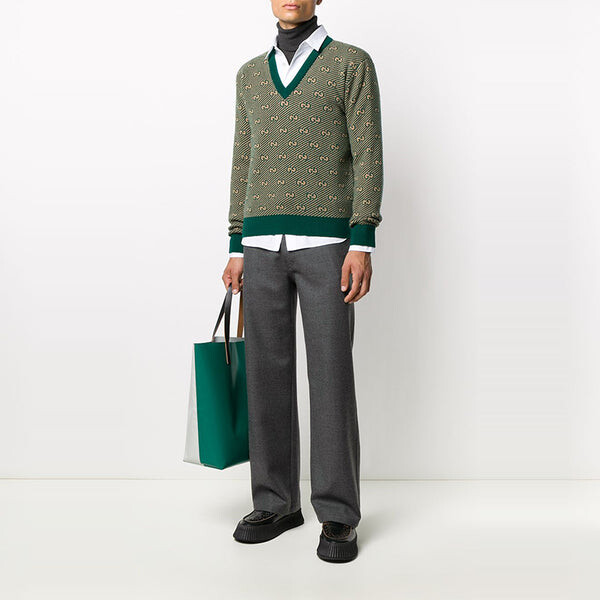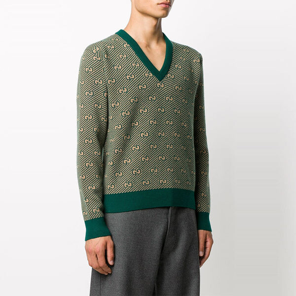 Свитер ss21 printed alphabet pattern v-neck sweater for men green Gucci, зеленый