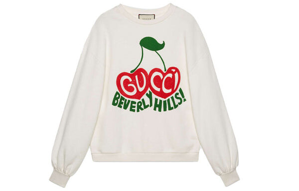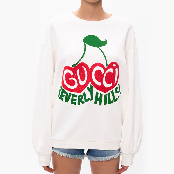 Свитер beverly hills cherry printed loose long sleeve white Gucci, белый 72 355₽