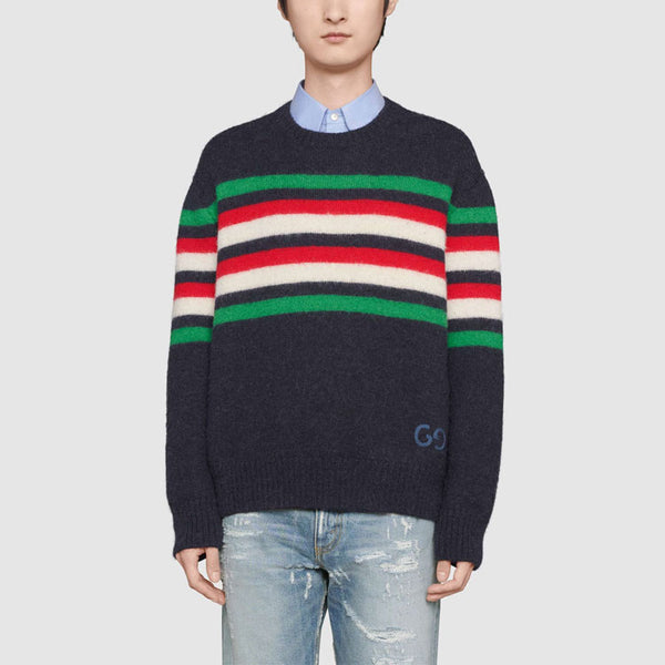 Свитер alpaca wool stripe crew knit 'navy' Gucci, синий 82 190₽