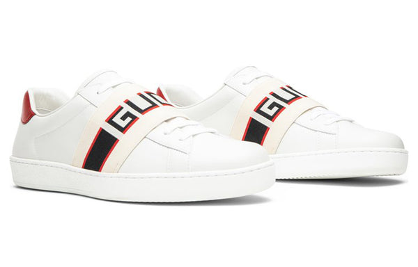 Кроссовки stripe leather sneaker 'white red black' Gucci, черный