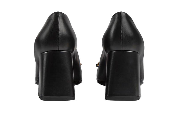Кроссовки mid-heel pump with horsebit 'black leather' Gucci, черный