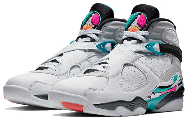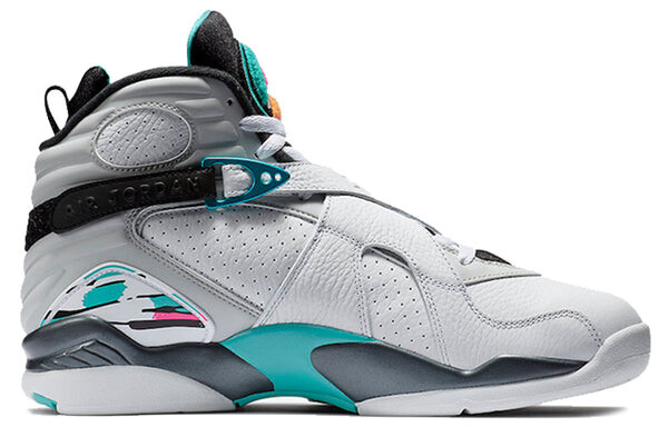 Бренд: Air Jordan Цвет: белый Air Jordan 8 Retro 'South Beach' радикально отличается от расцветок силуэта OG Chicago Bull. Верх из белой кожи с перфорированными панелями на боковой панели дополнен накладками, украшенными полосами Turbo Green и розового. Фирменная нашивка на язычке AJ8 из шенили также выполнена в бирюзовом, розовом и оранжевом цветах. Эта уникальная расцветка обязательно привлечет внимание и заявит о себе.