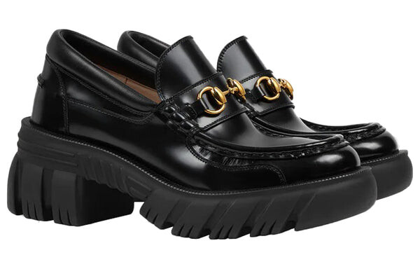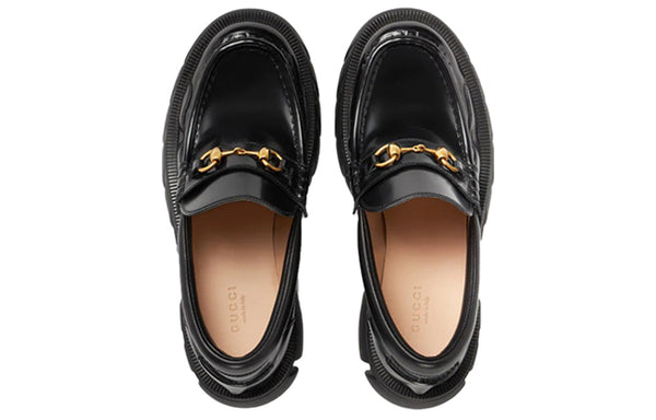Кроссовки loafer with horsebit 'black leahter' Gucci, черный