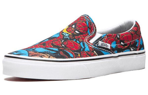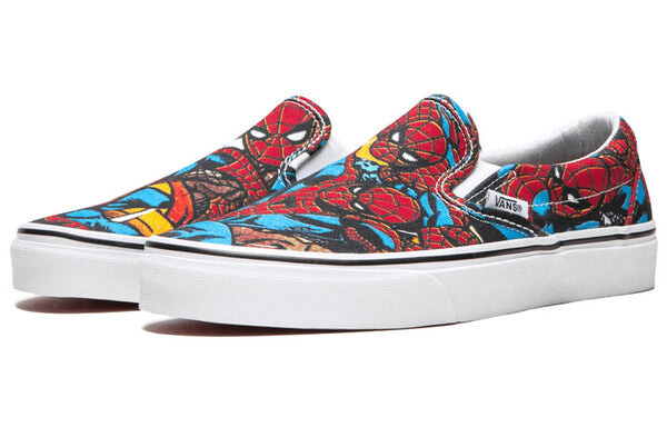 Vans Marvel x Slip-On 'Spiderman' — это сплошной принт с изображением Человека-паука на низкопрофильном парусиновом верхе. С кобрендингом Marvel и Vans на стельке, эти туфли также имеют мягкий белый воротник, эластичные боковые акценты и красную резиновую вафельную подошву.