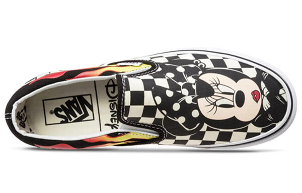 Бренд: Vans Цвет: черный Отпразднуйте 90-ю годовщину Микки Мауса с кроссовками Vans Disney x Slip-On 'Mickey & Minnie'. Эти туфли специального выпуска имеют черно-белый шахматный верх, боковые панели с пламенем, мягкий воротник и большую голову Микки Мауса, напечатанную на носке. Вулканизированная подошва обеспечивает гибкость и превосходное сцепление, что делает эти туфли идеальными для любого вида деятельности.