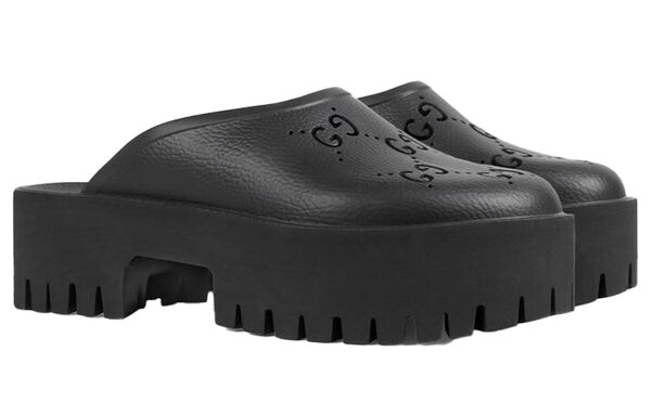 Сандалии platform perforated g sandal 'black rubber' Gucci, черный