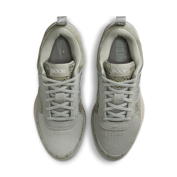 Бренд: Nike Цвет: мультиколор Nike Book 1 'Hike' черпает вдохновение из любви Девина Букера к природе, особенно во время походов с его собакой породы кане-корсо по кличке Хейвен. Эта расцветка включает в себя различные принты рептилий по всему серому верху из текстиля и кожи, а также низкий воротник, покрытый искусственным волосом пони. Темно-зеленый вид с серебристыми деталями напоминает узоры гремучей змеи, отдавая дань уважения дикой природе Юго-Запада, которую Букер лелеет.