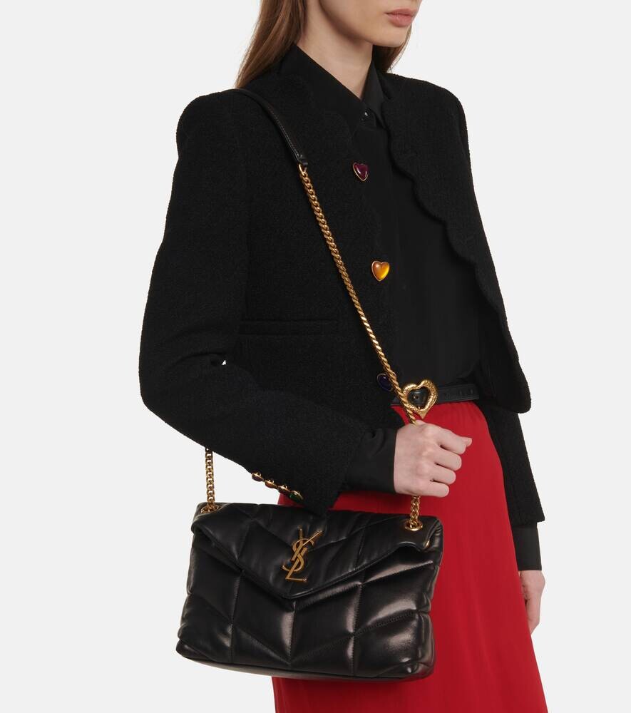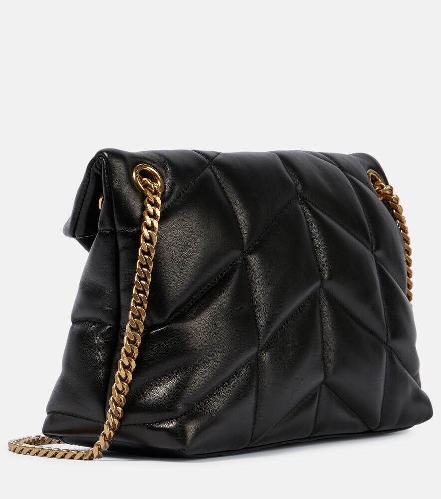 Маленькая кожаная сумка через плечо Puffer Saint Laurent, черный