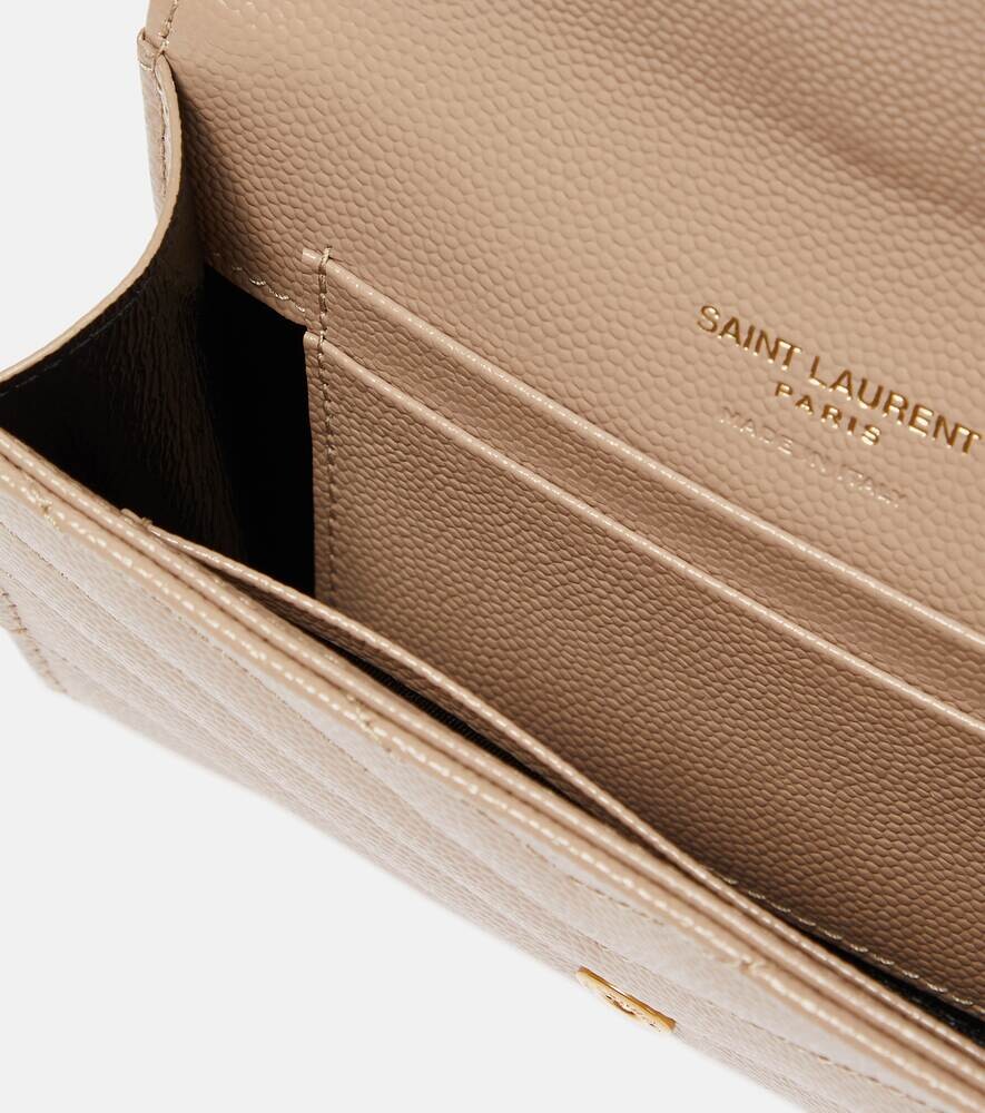 Маленький кожаный кошелек с монограммой Saint Laurent, бежевый