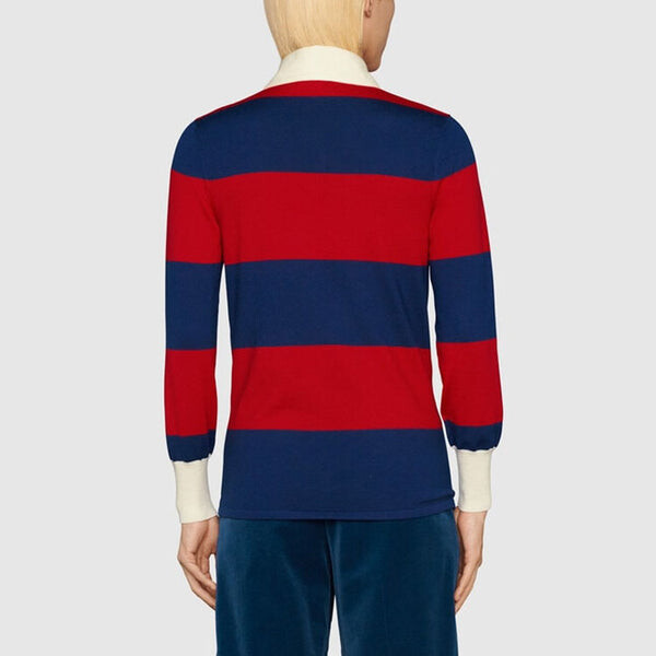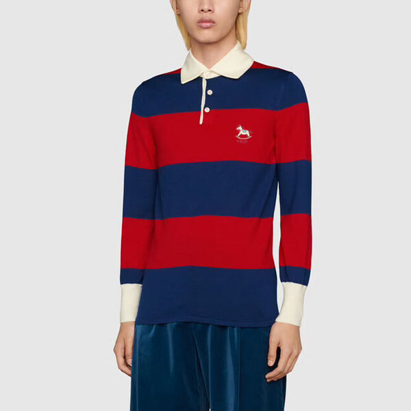 Рубашка поло striped wool polo 'blue red' Gucci, синий
