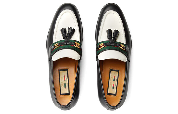 Кроссовки loafer with web and interlocking g 'black white' Gucci, черный 97 030₽