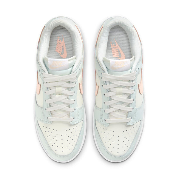 Верх женских кроссовок Nike Dunk Low Barely Green (W) выполнен из кожи Barely Green с логотипами Sail Swoosh. Белый тканый язычок с логотипом Sail Nike завершает дизайн. Артикул: DD1503-104 Дата выпуска: 21 мая 2021 г. Цвет: Barely green/Peach/White-barely green