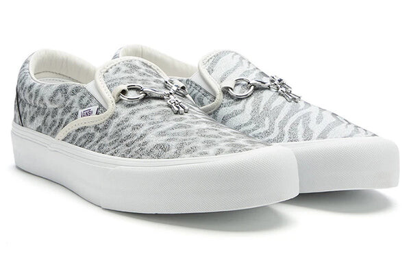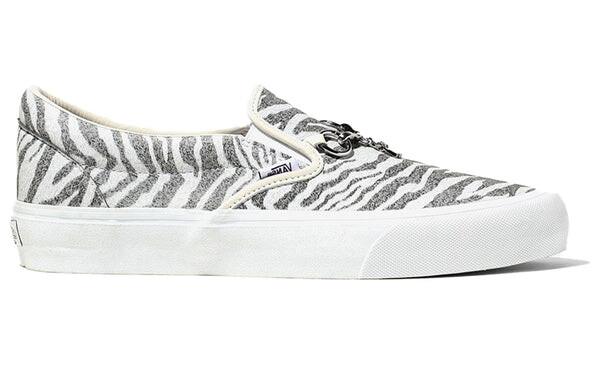 Бренд: Vans Цвет: белый Ищете стильный и уникальный взгляд на классические кроссовки без застежек? Обратите внимание на кроссовки Vans Needles x Vault Classic Slip-On V 'Animal Print'. Эти кроссовки, созданные в сотрудничестве с японским модным брендом Needles, отличаются несочетающимися дизайнами на синтетическом верхе — полосками зебры на левом кроссовке и пятнами леопарда на правом. Оба ботинка украшены металлическими удила и кисточками для дополнительного оттенка роскоши. Вулканизированная белая резиновая подошва закрепляет конструкцию без застежек, делая ее удобной, практичной и стильной.