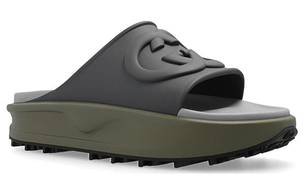 Тапочки interlocking g slide 'dark grey khaki' Gucci, серый