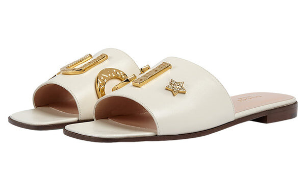 Сандалии cara grained leather slip-on sandal 'off-white' Gucci, белый
