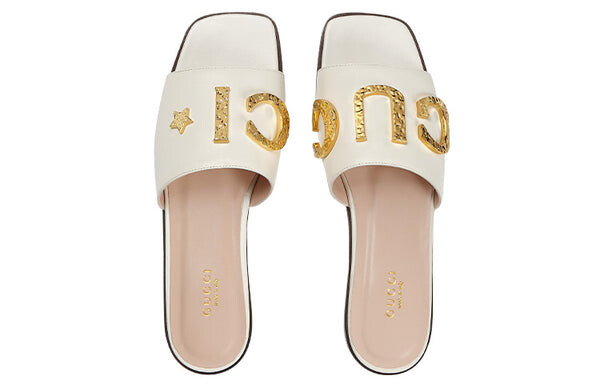 Сандалии cara grained leather slip-on sandal 'off-white' Gucci, белый 77 812₽