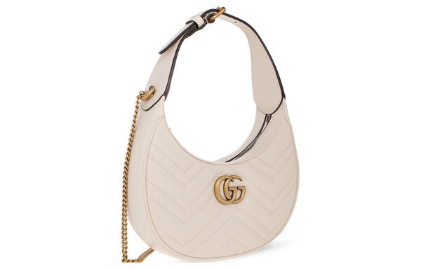 Сумка gg marmont half-moon-shaped mini bag 'mystic white' Gucci, белый 164 465₽