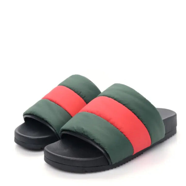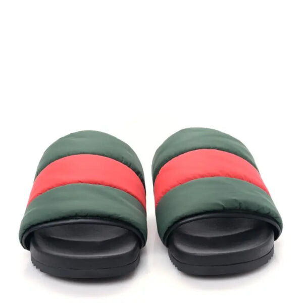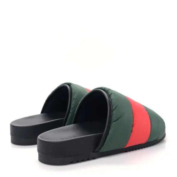 Тапочки padded web slide sandals 'green and red nylon' Gucci, черный