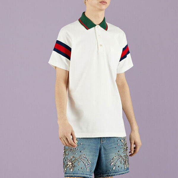 Рубашка поло cotton jersey polo with web 'white' Gucci, белый 68 020₽