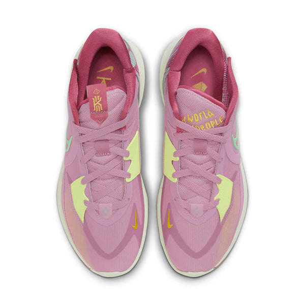 Бренд: Nike Цвет: розовый Представляем Nike Kyrie Low 5 1 World 1 People Orchid! Эти универсальные и стильные низкие кроссовки идеально подойдут для любого летнего образа. Почувствуйте оттенки африканских племен зеленого и оранжевого цвета с помощью светло-мятной пены на подошве, люверсах в передней части стопы и в качестве акцента на графических узорах на пятке. Неоново-желтый логотип Swoosh и вышитый язычок привлекут к вам внимание, а пурпурно-розовый цвет уравновешивает пастельный образ. Окунитесь в мир комфорта с мягкими воротниками на щиколотках, инкапсулированной технологией Nike Air и амортизацией Zoom под ногами, гарантирующей возможность ношения в течение всего дня. Покажите свой модный стиль с этой низкой моделью, подходящей как для повседневного уличного стиля, так и для катания на скейтборде. Не ищите дальше — ощутите настоящий комфорт и универсальность с Nike Kyrie Low 5 1 World 1 People Orchid.