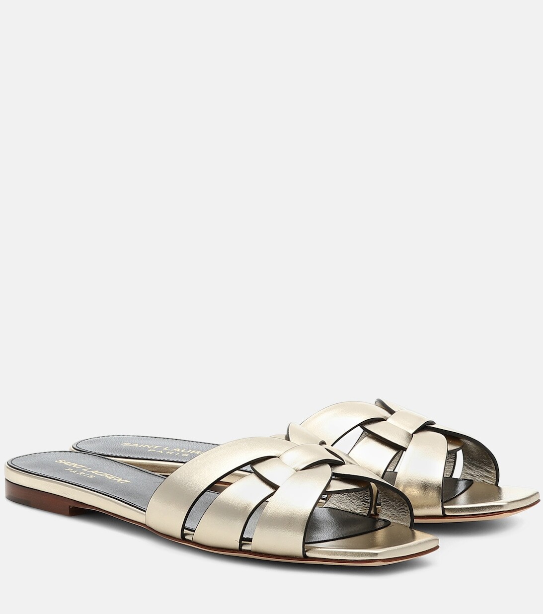 Кожаные шлепанцы Tribute Nu Pieds 05 Saint Laurent, золотой 79 816₽