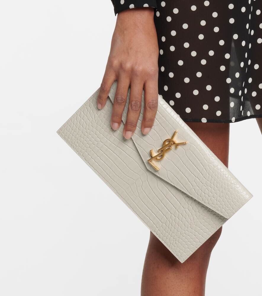 Клатч Uptown из кожи с эффектом крокодила Saint Laurent, белый