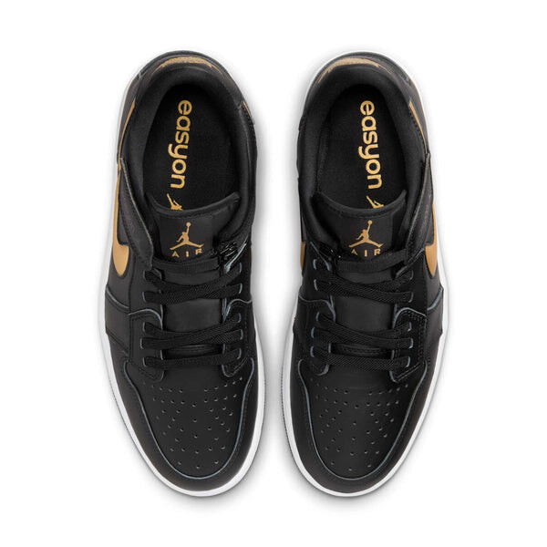 Бренд: Air Jordan Цвет: черный Air Jordan 1 Low EasyOn Black Gold сочетает в себе классический стиль с современным удобством. Их черный кожаный верх дополнен блестящими золотыми деталями, что создает роскошную, но спортивную эстетику. Система EasyOn оснащена скрытой молнией и ремешком для надежной, настраиваемой посадки, упрощая надевание и снятие без ущерба для стиля. Этот культовый силуэт обеспечивает комфорт и универсальность, что делает его обязательным для любого любителя кроссовок.