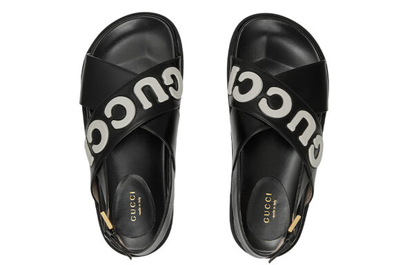 Кроссовки sandal with logo script 'black white' Gucci, черный 68 431₽