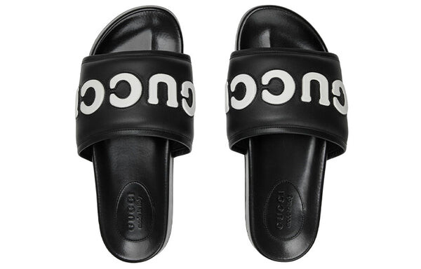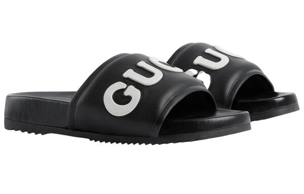 Тапочки sideline rubber logo slide 'black leather' Gucci, черный