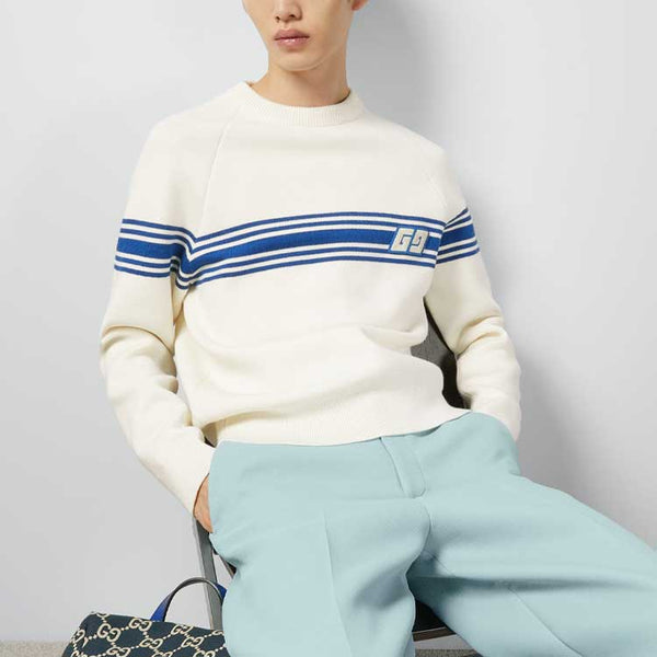Свитер knit wool sweater with square gg 'ivory blue' Gucci, белый 95 474₽