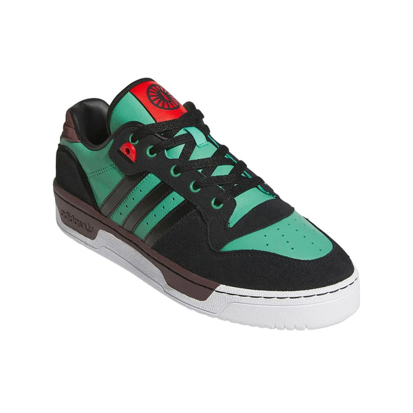 Кроссовки Demon Slayer x adidas Rivalry Low Tanjiro отдают дань уважения главному герою аниме с помощью зелено-черного клетчатого дизайна, вдохновленного культовым хаори Тандзиро. Каждая пара имеет рукоять меча персонажа на язычке, что добавляет уникальный штрих к этому стильному сотрудничеству.