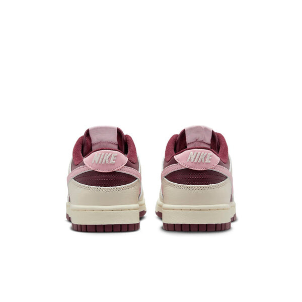Кроссовки Nike Dunk Low Premium "Valentine's Day" обновили баскетбольную обувь heritage с помощью отличительной цветовой комбинации, вдохновленной 14 февраля. Низкий верх дополнен полностью кожаным верхом с насыщенной бордовой основой и белоснежными накладками на передней части стопы и пятке. Мягкие розовые акценты выделяются на яркой, плетеной бирке Nike на язычке и язычке на пятке. Низкий верх дополнен прочной резиновой подошвой, которая сочетает винтажные белоснежные боковины с темно-бордовой резиновой подошвой.