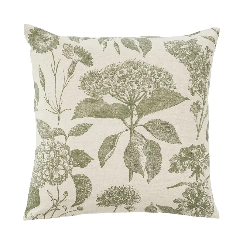 Чехол для декоративной подушки из натурального хлопка и льна с цветочным принтом. Потайная боковая молния.