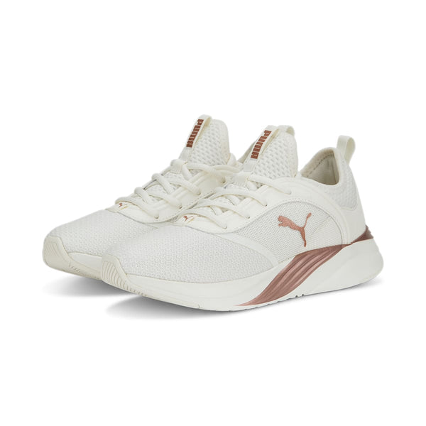 Ощутите комфорт и стиль с этими кроссовками Puma Softride Ruby. Благодаря мягкой амортизации Softride и дышащему сетчатому верху они обеспечивают поддержку в течение всего дня и идеальную посадку. Стильные акценты из розового золота добавляют нотку роскоши, делая их идеальными для тренировок или повседневных выходов.