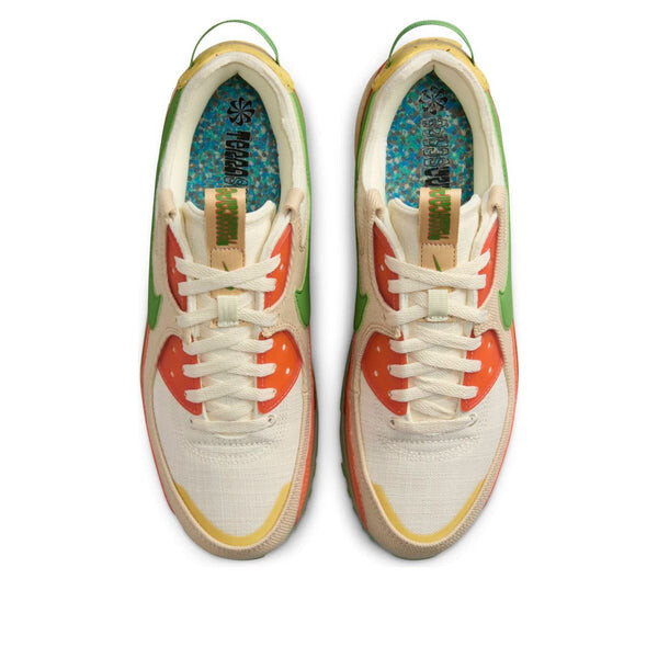 Бренд: Nike Цвет: мультиколор Кроссовки Nike Air Max 90 Terrascape в бежевом, оранжевом и зеленом цветах сочетают стиль и экологичность. Благодаря переработанным материалам и культовой амортизации Air Max эти кроссовки обеспечивают комфорт и поддержку. Яркие цветные акценты на брызговиках, логотипах Swoosh и подошве добавляют индивидуальности, а межподошва Crater Foam и пятнистая подошва повышают долговечность.