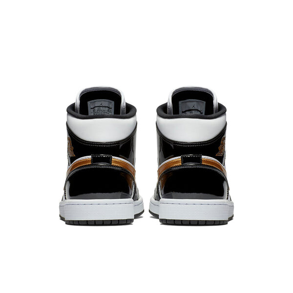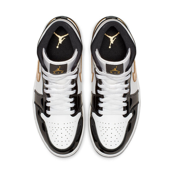 Бренд: Air Jordan Цвет: черный Air Jordan 1 Mid Patent 'Black Gold' — это поразительное воплощение первой фирменной модели кроссовок Майкла Джексона. Гладкая белая кожаная основа подчеркивается накладками из лакированной кожи мерцающего черного оттенка. Металлические золотые детали на Swoosh, элементах брендинга и стельке добавляют нотку роскоши этим и без того выдающимся кроссовкам.