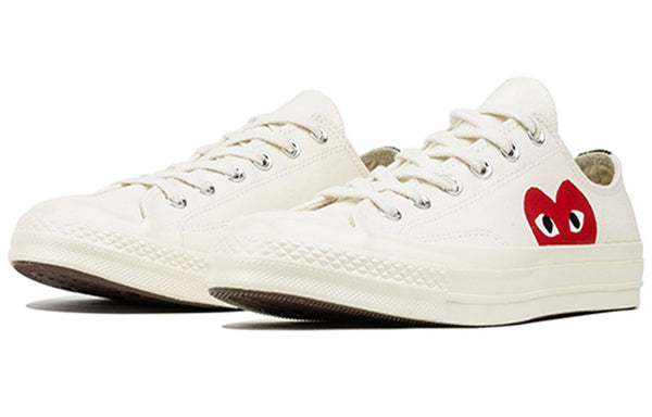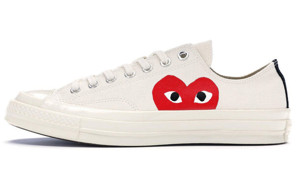 Бренд: Converse Цвет: белый Если вы ищете классические кроссовки с современным оттенком, вам понравятся Comme des Garçons x Chuck Taylor 1970 Low 'Play'. Эта специальная цветовая гамма была разработана графическим художником Филипом Паговски и основателем Comme des Garçons Рей Кавакубо и имеет верх из молочного холста с крупным фирменным красным сердцем CDG, напечатанным на боковых панелях. Кроме того, обувь поставляется с резиновым носком и подошвой из вулканизированной резины 1970-х годов для дополнительного комфорта и долговечности.