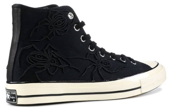 Бренд: Converse Цвет: черный Доктор Ву, татуировщик звезд, объединился с Converse, чтобы создать новую версию классических Chuck Taylor All Star 70 Hi. Черные холщовые высокие кроссовки вдохновлены оригиналом 1970-х годов с несколькими современными штрихами. Вышитый дизайн «Паук и муха», вдохновленный известным стихотворением Мэри Хоуитт, украшает боковую часть ботинка. Язычок сделан из кожи с узором в виде паутины, а на носке напечатана муха. Эта переработанная классика обязательно привлечет внимание, независимо от того, танцуете ли вы на улице или на танцполе.