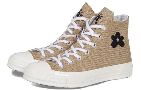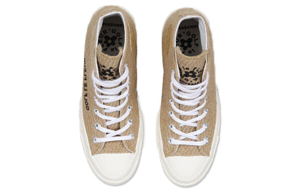 Бренд: Converse Цвет: хаки Коллекция Tyler, the Creator x Converse Golf le Fleur — идеальный способ добавить индивидуальности в свой гардероб. Эти высокие кеды Chuck 70 изготовлены из тканого материала в коричневом оттенке, контрастирующего с несоответствующими внешними боковыми стенками. Подошва включает в себя сплошной цветочный принт в черно-белых тонах, в то время как надпись Golf Le Fleur на одном кроссовке написана в обратном порядке, а на другом — значок цветка.