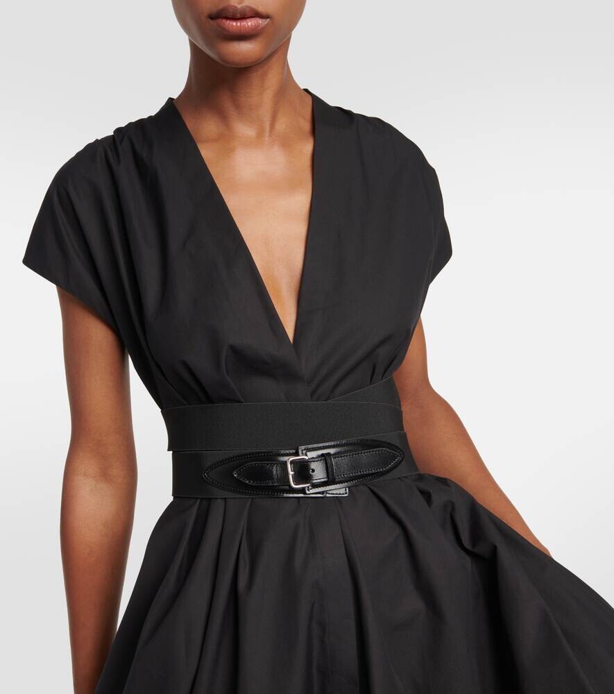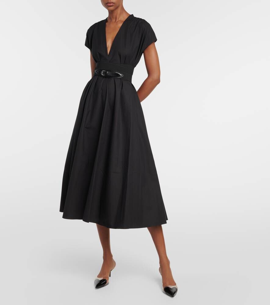 Платье миди из хлопкового поплина с поясом ALAÏA, черный