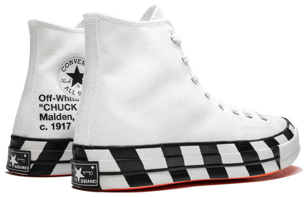 Бренд: Converse Цвет: черный 10 Chuck Taylor — классические кроссовки, обновленные Вирджилом Абло. Они сделаны из обычного хлопкового полотна и отделаны в универсальном белоснежном оттенке. Подпись кроссовок и резиновый номерной знак сохранены, хотя последний перевернут вверх ногами. На внутренней стороне напечатан текст, а ярко-оранжевая подошва добавляет немного веселья.