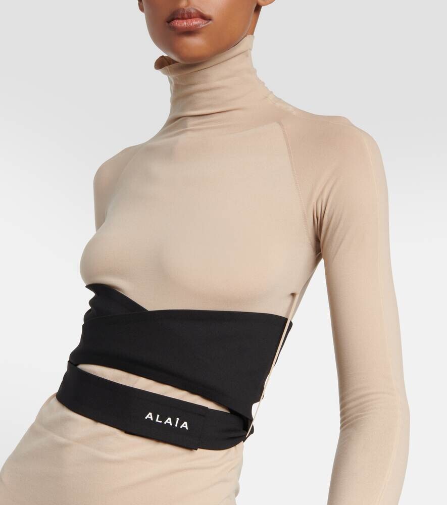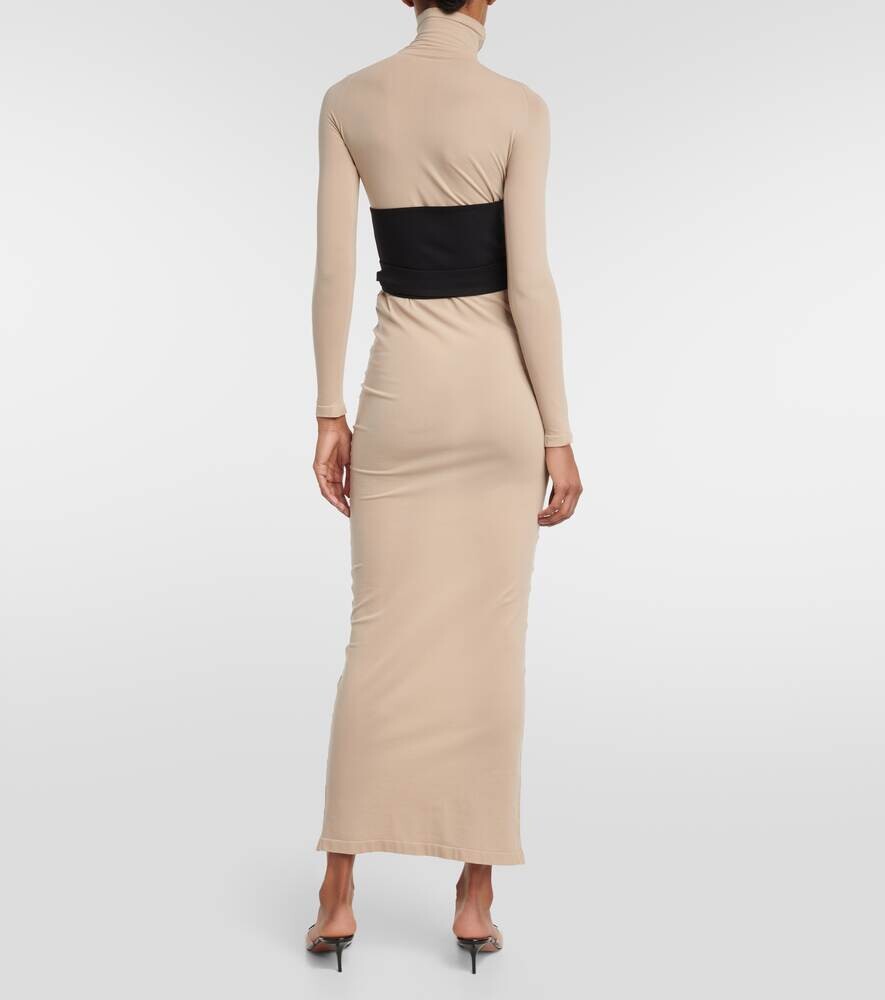 Платье макси из джерси с водолазкой и поясом ALAÏA, бежевый
