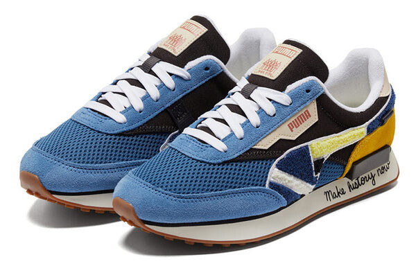 Бренд: Puma Цвет: синий Black Fives x PUMA Future Rider «Star Sapphire Maize» — идеальные кроссовки для тех, кто любит и стиль, и комфорт. Эти кроссовки взяты из совместной коллекции с некоммерческим фондом Black Fives Foundation, который чтит историю афроамериканского баскетбола. Верх кроссовок изготовлен из черного текстиля, синей сетки и желто-синих замшевых накладок. Синельный Swoosh украшает верх, добавляя нотку стиля. Литая промежуточная подошва из ЭВА обеспечивает комфорт и поддержку, а боковая стенка украшена девизом фонда Black Fives Foundation: «Создай историю сейчас».