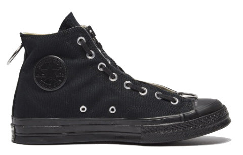 Бренд: Converse Цвет: черный Вечно культовые Chuck 70 получают модное преображение в этой коллаборации Undercover x Converse. Полностью черный верх из парусины выведен на новый уровень с помощью крупных молний в средней части стопы и металлических кольцевых украшений, а вышитая нашивка «NW» и текст «The New Warriors» на носке подчеркивают панковский стиль.