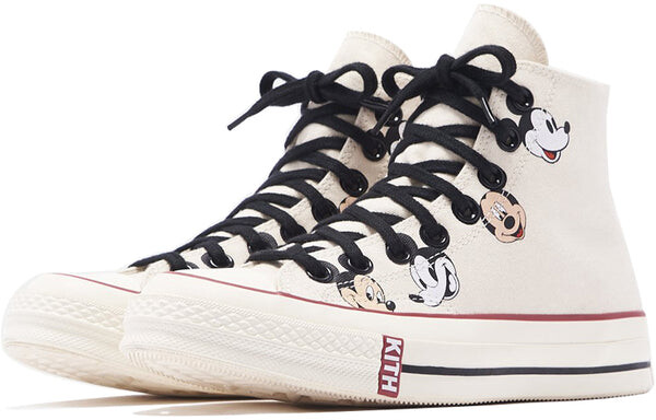 Бренд: Converse Цвет: белый Представляем Converse KITH x Disney x Chuck 70 'Mickey Mouse Portrait'! Эти кроссовки идеально подойдут как поклонникам Микки Мауса, так и Converse. Верх из парусины украшен различными версиями лица Микки, а совместный брендинг распределен по подошвам из вулканизированной резины. Вам понравится классический вид и ощущение этих кроссовок.