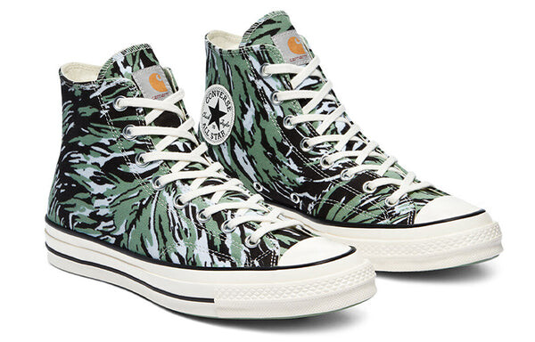 Бренд: Converse Цвет: черный Представляем Converse Carhartt WIP x Chuck Taylor All Star 1970s Hi 'Hinterland'. Эти кроссовки специального выпуска являются результатом сотрудничества двух культовых брендов Converse и Carhartt. Кроссовки изготовлены из 12-унциевого холста и украшены принтом из коллекции Carhartt Весна/Лето 2021. Дизайн подчеркивается хромированными люверсами и стелькой OrthoLite для амортизации. Подошва имеет классический ромбовидный узор и дополнительный акцент цвета Basil. Независимо от того, выходите ли вы на улицы или на тропы, Converse Carhartt WIP x Chuck Taylor All Star 1970s Hi 'Hinterland' — это ваша любимая обувь для стиля и комфорта.