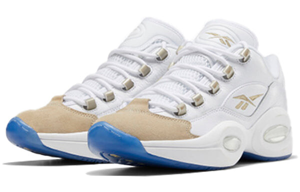 Бренд: Reebok Цвет: желтый Reebok Question Low Retro 'Oatmeal' 2020 — вот классическая расцветка фирменной обуви Аллена Айверсона 1999 года, которая возвращается в 2020 году. Конструкция верна оригиналу, с белой мятой кожей и замшевым носком коричневого цвета. Металлические бронзовые акценты появляются на люверсах и логотипах Vector. Белая промежуточная подошва EVA обеспечивает амортизацию Hexalite, а ледяная синяя полупрозрачная подошва завершает образ.