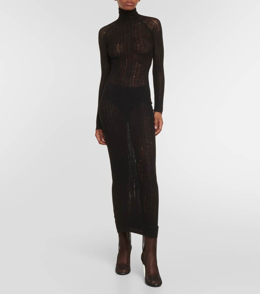 Платье миди из смесовой шерсти с эффектом потертости ALAÏA, черный 183 608₽